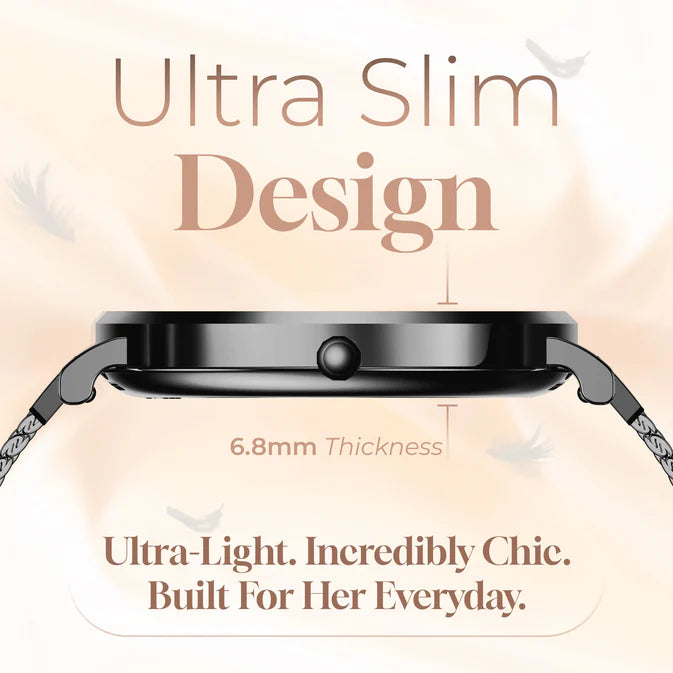1.27” HD Display Smartwatch with Bluetooth Calling, Female Health Monitoring, DIY Watch Faces, Voice Assistant, In-Built Games, Premium Metal Mesh Strap, Weather Info & Smart Notifications